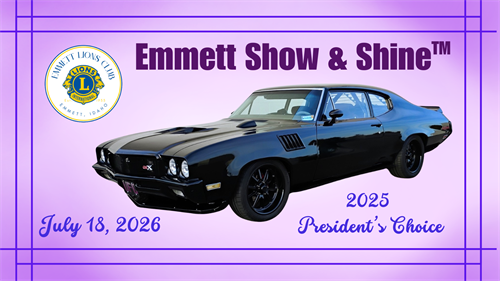 The Emmett Lions Club Emmett Show and Shine™ car show July 18, 2026